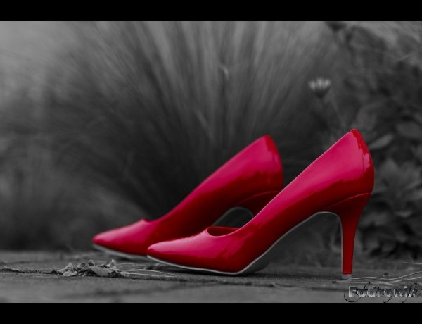 roten Schuhe aus der Ebene darunter zum Vorschein kamen.
